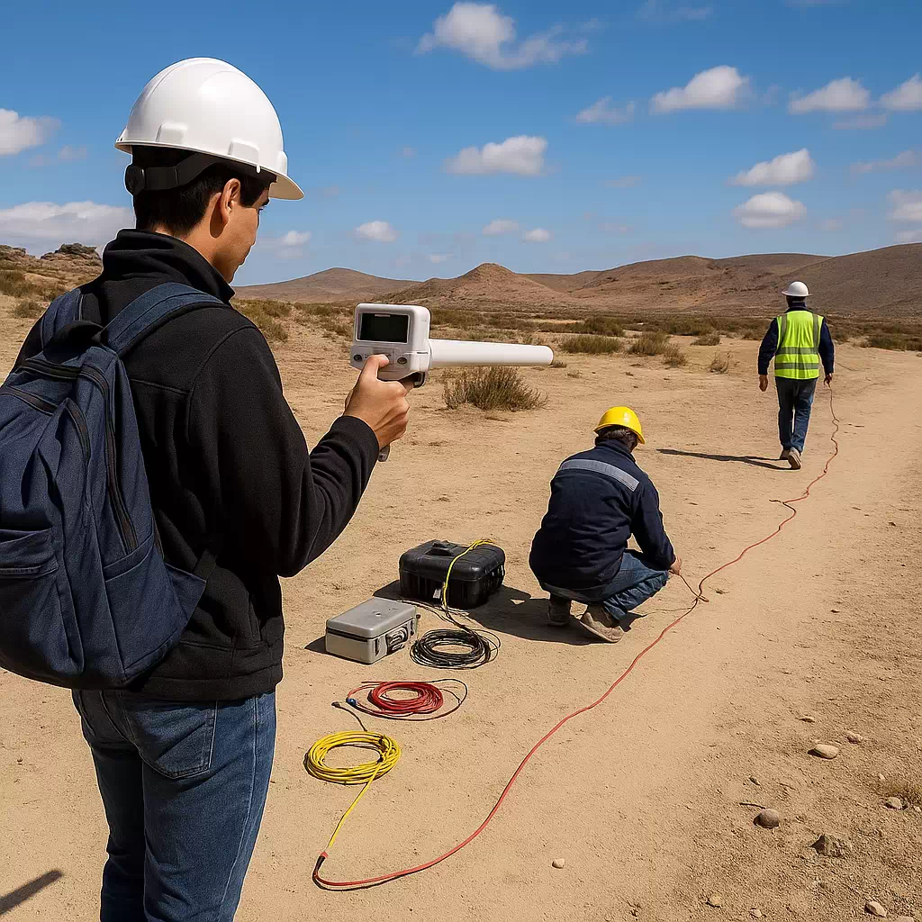 Estudios por métodos indirectos, Magnetometría, Reducción al Polo, Polarización Inducida, SEV, etc. Para la determinación de anomalías o cuerpos mineralizados a profundidad solicitada, limites estructurales, limites lito-lógicos.